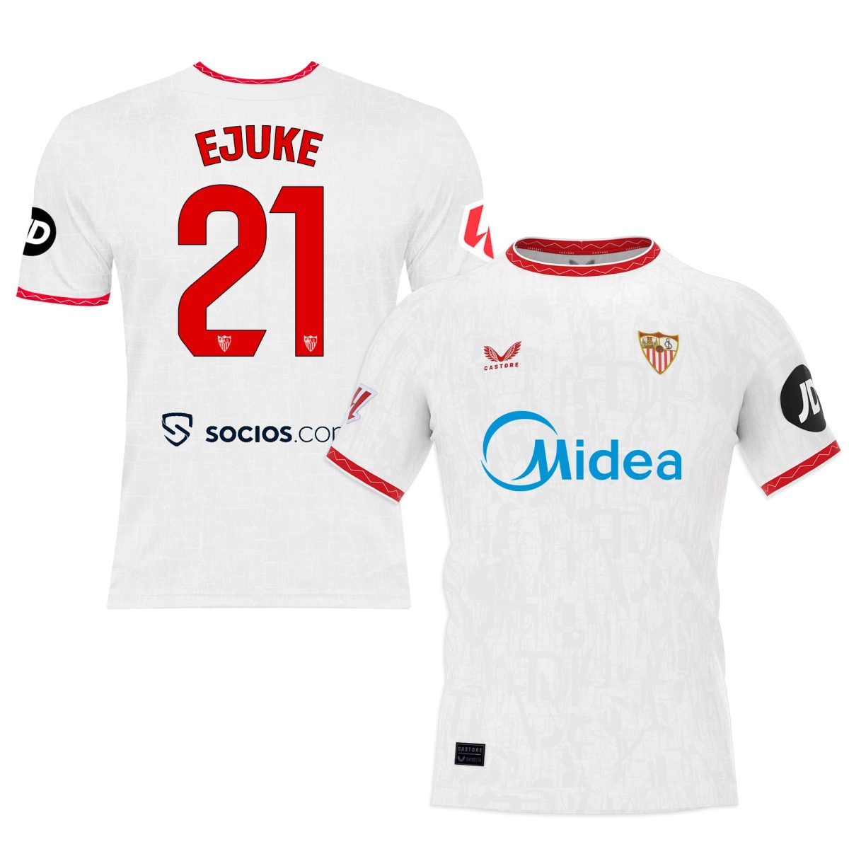 Children’s first kit shirt with number 21 and the Sevilla FC player Ejuke’s screen print. Season 24/25.