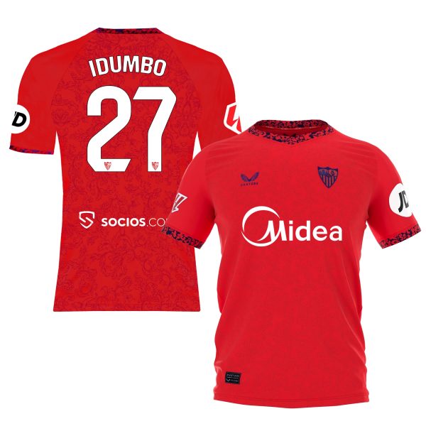 Second kit shirt with number 27 and the Sevilla FC player Idumbo’s screen print. Season 24/25.